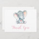 Tarjeta De Agradecimiento Elefante Bebé Niña Rosa y Gris Lindo