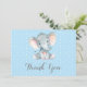 Tarjeta De Agradecimiento Elefante Bebé Niño Azul y Gris Lindo