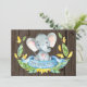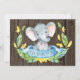 Tarjeta De Agradecimiento Elefante Bebé Niño Azul y Gris Rústico Lindo