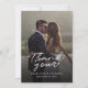 A great and thoughtful way to thank your friends, family, and coworkers who graced you their presence on your your wedding day with this modern photo thank you cards with script hand lettered "thank you" and a love heart.