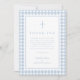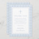 Elegant Baby Blue Gingham Boy Baptism Thank You Card