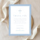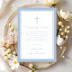 Elegant Baby Blue Religious Cross Baptism Thank You Card.