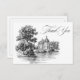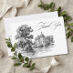 Make your wedding timeless with this elegant charcoal black vintage toile wedding thank you card design. Featuring a detailed manor and estate sketch by the water, it is perfect for a sophisticated ceremony. This classic look adds a refined touch to your historic home or garden celebration. Created by Simply Farmhouse Press.