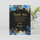 Tarjeta De Agradecimiento Elegant Blue and Gold Flowers Sweet Sixteen