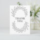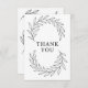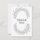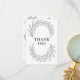 The front of the card features an elegant arc of flowing botanical ribbons surrounding a refined serif “Thank You”, creating a beautifully balanced and timeless center focal point. Delicate, detailed leaf structures sweep gracefully across the top and bottom, producing a full-card artistic composition that feels both clean and sophisticated.