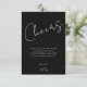 Send a stylish, heartfelt thank you that perfectly matches your elegant black-and-white 40th birthday party suite. This modern card features bold “Cheers” script on a rich black background with a clean minimalist message, creating a polished and timeless look. Personalize with your name and sign-off for a meaningful finishing touch after a milestone celebration, cocktail-style gathering, or black-tie inspired birthday event.