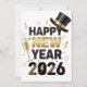 Tarjeta De Agradecimiento Elegant Happy New Year 2026 Black & Gold Greeting
