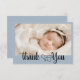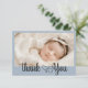 This elegant card in a soft dusty blue tone features your baby’s photo on the front with graceful heart script and space for a personal thank-you message on the back. The simple and timeless design adds a touch of sophistication, perfect for celebrating your baby shower with style. Ideal for new parents, baby shower hosts, or as a chic keepsake for family and friends.