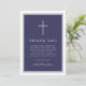 Elegant Navy Blue Cross Boy First Communion Thank You Card.