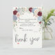 Express your gratitude with a sophisticated botanical design featuring deep crimson blooms gracefully framing your favorite custom newlywed picture.This design features a highly legible typographic hierarchy, pairing classic serif body text with an elegant handwritten calligraphy script for the appreciation message. The visual composition centers a custom couple's portrait photograph, formally framed by soft corner clusters of deep maroon blooms, dusty blue botanicals, and cream floral accents against a crisp, high-contrast background. The blend between the rich color palette and subtle pastel tones establishes a timeless garden aesthetic, while a small heart icon anchors the layout.This is a flat printed image with a soft watercolor painted effect, not actual raised material or textured canvas.