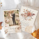 This elegant 2-sided wedding thank you card features a replaceable photo front and burnt orange watercolor florals with boho garden roses on the back. Perfect for fall weddings, it blends rustic charm and handwritten calligraphy for a warm, romantic keepsake.