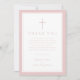 Tarjeta De Agradecimiento Elegant Pink Religious Cross Girl Baptism