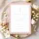 Elegant Pink Religious Cross Girl Baptism Thank You Card.