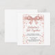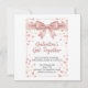 "Celebrate friendship in style with this chic 'Galentine's Get-Together' invitation design. The card features a stunning, realistic pink satin bow at the top, cascading into a shower of rose gold glitter and soft pink hearts. Set against a clean white background, the typography blends elegant script with modern serif fonts to create a warm and inviting atmosphere. Perfect for a girls' night out, brunch, or an evening of bubbles and sweet treats on February 13th. This design captures the essence of feminine elegance and festive fun