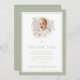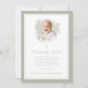 Tarjeta De Agradecimiento Elegant Sage Green Bow Religious Baptism Photo