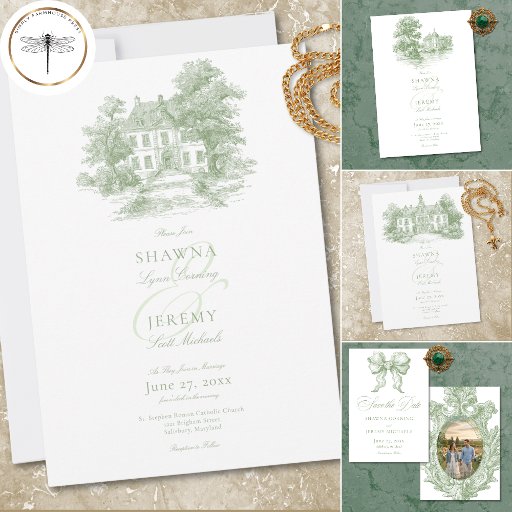 Elegant Sage Green Toile French Manor WeddingDiseñado por Kathe Santillo