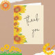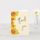 Tarjeta de agradecimiento temática de girasoles amarillos con estilo pictórico. Nuestro diseño presenta girasoles anaranjados amarillos pictóricos sobre un fondo amarillo claro para crear este arreglo de estilo otoñal o campestre. Tarjeta de agradecimiento simple pero elegante que se puede utilizar para bodas o cualquier ocasión.