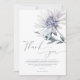 Featuring a large, elegant watercolor winter bloom (a lovely chrysanthemum variety) in soft, muted blue and lavender tones. The stunning floral element adds a sophisticated touch, while the title "Thank you" is written in a graceful script.