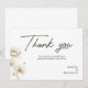 The horizontal layout features a stylish, modern script "Thank you" that feels personal and warm, paired with a clean serif font for your names. The minimalist aesthetic ensures that your message remains the focal point while surrounded by botanical beauty.