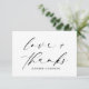 Elegante Amor y Gracias Guión manuscrito con tarjeta de agradecimiento Boda de código QR. Cambiar todos los colores de texto para un especial Gracias.