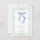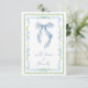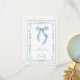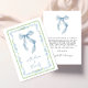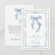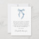 Tarjeta de agradecimiento de despedida de soltera chic y caprichosa que incluye un marco de aquarela floral verde y azul vintage con inspiración granmillenaria, un elegante arco azul y "con amor + gracias" presentado en un script de caligrafía azul. En el reverso, personaliza tu mensaje de agradecimiento en letra moderna simple y agrega tu nombre en un script similar a una firma, o déjalo en blanco para notas manuscritas.