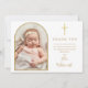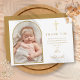 Tarjeta De Agradecimiento Elegante Arco de Oro Foto Firma Escritura Bautizo