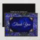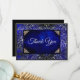 Tarjeta De Agradecimiento Elegante azul real floral falso plateado