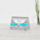 Tarjeta de agradecimiento elegante con cinta de satén azul turquesa y centro de diamantes y encaje de diamantes plateados.