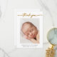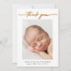 Elegante Invitación con guión dorado bebé Gracias tarjeta. La parte posterior incluye un mensaje de agradecimiento que puede personalizar o eliminar si prefiere escribir a mano su agradecimiento. Haga clic en el botón de personalización para editar este diseño con su foto y sus detalles.