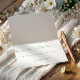 18 pt de grosor / 120 lb de peso. Blanco suave, textura suave tipo cáscara de huevo.