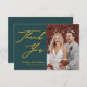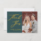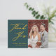 Green Elegant Gold Script Modern Photo Minimalista Boda Gracias Tarjeta. Exprese lo agradecidos que están con sus amigos y familiares que hicieron de su boda un especial extra con esta hermosa tarjeta de agradecimiento de boda. Todos los textos están preorganizados para que puedas personalizarlos fácil y rápidamente con tus propias palabras.