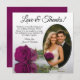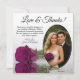 Estas hermosas tarjetas de agradecimiento boda son una manera maravillosa de mostrar su aprecio a sus amigos y familia por celebrar con usted en su día especial. Presentan la foto de su boda en un marco ovalado con una única carcasa de tallo largo morado, magenta o rosa color berry sobre su lado reflejando en agua. El título dice "Amor y Gracias" con espacio para una nota y firma personalizado. Clásicas, románticas y sofisticadas, estas tarjetas son la manera perfecta de concluir su celebración boda.