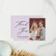 Elegante Mauve Elegant Script Modern Photo Minimalista Boda Gracias Tarjeta. Exprese lo agradecidos que están con sus amigos y familiares que hicieron de su boda un especial extra con esta hermosa tarjeta de agradecimiento de boda. Todos los textos están preorganizados para que puedas personalizarlos fácil y rápidamente con tus propias palabras.