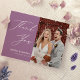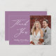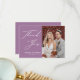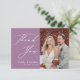 Elegante Mauve Elegant Script Modern Photo Minimalista Boda Gracias Tarjeta. Exprese lo agradecidos que están con sus amigos y familiares que hicieron de su boda un especial extra con esta hermosa tarjeta de agradecimiento de boda. Todos los textos están preorganizados para que puedas personalizarlos fácil y rápidamente con tus propias palabras.