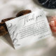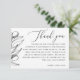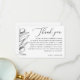 Gracias a sus huéspedes con elegancia intemporal utilizando esta tarjeta de agradecimiento en blanco y negro con un diseño hermoso, que incluye follaje de oliva y un delicado guión. Perfecto para bodas italianos o mediterráneos, recepciones al aire libre y celebraciones rústicas. Personalizable total con tu mensaje y nombres, es una manera refinada y sincera de agradecer a tus invitados. Una manera elegante y reflexiva de mostrar su aprecio.