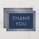 Tarjeta De Agradecimiento Elegante borde clásico de la marina azul y platead