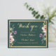 Elegante bosque verde, dorado y floral rosa Gracias invitación a la boda. Este Boda botánico rosa floral con detalles de la tarjeta es una invitación de lujo para cualquier chica de cristal elegante y sofisticado. Este diseño es ideal para un evento fiesta moderno y elegante. Personalizar este diseño con su propio mensaje e información personalizada. Todos los diseños están impresos.
