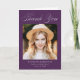 Elegante tarjeta de agradecimiento por graduación con "Gracias" en escritura de caligrafía blanca con la foto del graduado mostrada debajo en un fondo morado. Personalice la tarjeta de agradecimiento de graduación con el nombre del graduado, el nombre de la escuela y el año de graduación. El interior de la tarjeta de agradecimiento proporciona espacio para un mensaje escrito a mano o con tipo.