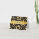 Una elegante carta de agradecimiento de boda en negro y oro. Patrón damasco de flores de lirio dorado sobre un fondo negro con una cinta dorada horizontal. Esta exquisita tarjeta es el toque final perfecto para su evento formal, o cualquier evento que requiera una nota de agradecimiento.