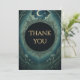 Envía gratitud con elegancia gótica. Esta tarjeta de agradecimiento de Mascarada bajo la luz de la luna presenta tonos negros oscuros, texto dorado y detalles celestes, perfecta para fiestas de Halloween y eventos bajo la luz de la luna.
