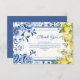 Tarjeta De Agradecimiento Elegante Desayuno Nupcial Floral Azul y Limón Amar