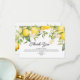 Eleva tu despedida de soltera con nuestra tarjeta de agradecimiento para despedida de soltera Elegant Mediterranean Yellow Lemon. Con ramas de limón y flores de limonero pintadas al estilo acuarela, junto con una plantilla de mensaje de agradecimiento en texto de letra elegante, esta tarjeta captura la esencia del encanto mediterráneo y la elegancia cítrica. Perfecta para novias que organizan una despedida de soltera con tema de limón, inspirada en cítricos o con destino italiano, esta tarjeta establece el tono para una celebración elegante y memorable.