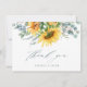 Tarjeta de agradecimiento de desayuno nupcial floral rústica elegante con ramo de girasoles de acuarela pintados a mano y eucalipto y caligrafía moderna de agradecimiento. Haga clic en el botón de edición para personalizar este diseño.