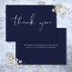 Con un elegante guión de agradecimiento en un fondo azul marino. Puede personalizar con su propio mensaje de agradecimiento al revés, o si prefiere agregar su mensaje manuscrito, elimine el texto. ¡Una forma perfecta de agradecerte! Diseñado por Thisisnotme©