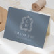 Tarjeta De Agradecimiento Elegante Escudo Monograma Dusty Blue Boda