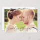 Elegante foto de boda tarjeta de agradecimiento incluye un retrato boda en el frente con texto de escritura moderno negro sobre los nombres de la novia y el boda de fecha. Un mensaje de agradecimiento al personalizado y una segunda foto con un marco orgánico moderno aparecen en la parte posterior. La vegetación acuática incluye eucalipto, hojas y ramas de eucalipto de plata en suaves tonos verdes de menta, verde, oliva y verde azul mudo. Perfecto para un evento de primavera o verano.