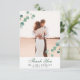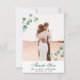 Elegante Eucalyptus Greenery Calligraphy Boda Foto Tarjeta de agradecimiento. Exprese lo agradecidos que están con sus amigos y familiares que hicieron de su boda un especial extra con esta hermosa tarjeta de agradecimiento de boda. Todos los textos están preorganizados para que puedas personalizarlos fácil y rápidamente con tus propias palabras.