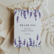 Tarjeta de agradecimiento para fiesta de despedida de soltera de lavanda. Un diseño clásico y elegante de acuarela de lavanda, perfecto para una fiesta campestre floral de primavera.