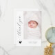 Crea tu propia hermosa y elegante ducha de bebé gracias tarjeta de fotos para agradecer a amigos y familia por dar la bienvenida a tu recién nacido! El elegante diseño moderno y minimalista incluye una foto personalizada de su bebé en un costado, un mensaje de "gracias" en un guión moderno de caligrafía, y la información de su bebé en una tipografía clásica en la parte inferior. ¡También hay un bonito corazón en la esquina! En la parte trasera hay un mensaje de personalizable con sus nombres. Hacerlo único reemplazando el texto y las imágenes haciendo clic en el botón "Personalizar". Este diseño es elegante, atemporal y neutral en cuanto a género.