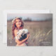 Esta elegante tarjeta de agradecimiento de graduación presenta una foto completa y caligrafía elegante. "Gracias" está escrito en hermoso script dorado en la esquina inferior derecha, con el nombre del graduado y el año de graduación debajo. El diseño de tipografía dorada y blanca superpone una foto completa del nuevo graduado (orientación horizontal/paisaje). La parte posterior está en blanco y puede acomodar fotos adicionales o una nota personalizada para los destinatarios.